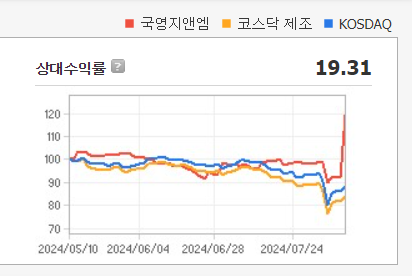 국영지앤엠 주가 들썩... 장기 박스권 매물 소화이후 가속페달