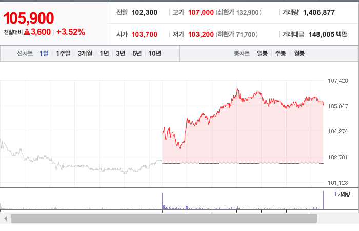현재 기아의 주가는 105,900원으로, 전날보다 13.83원 하락한 상태입니다. 기아의 주주 구성에서는 현대자동차와 그 외 4인이 36.11%의 지분을 보유하고 있습니다. 자동차 제조업체인 기아의 장중 주가는 105,900원입니다. 기아의 시가총액은 42조 3,450억 원이며, 총 발행 주식 수는 399,858,417주입니다. 외국인 투자자들의 보유 비율은 41.36%이며, 장중 거래량은 1,467,142주에 달했습니다. 기아의 매출액은 262,129억 원에 이릅니다.