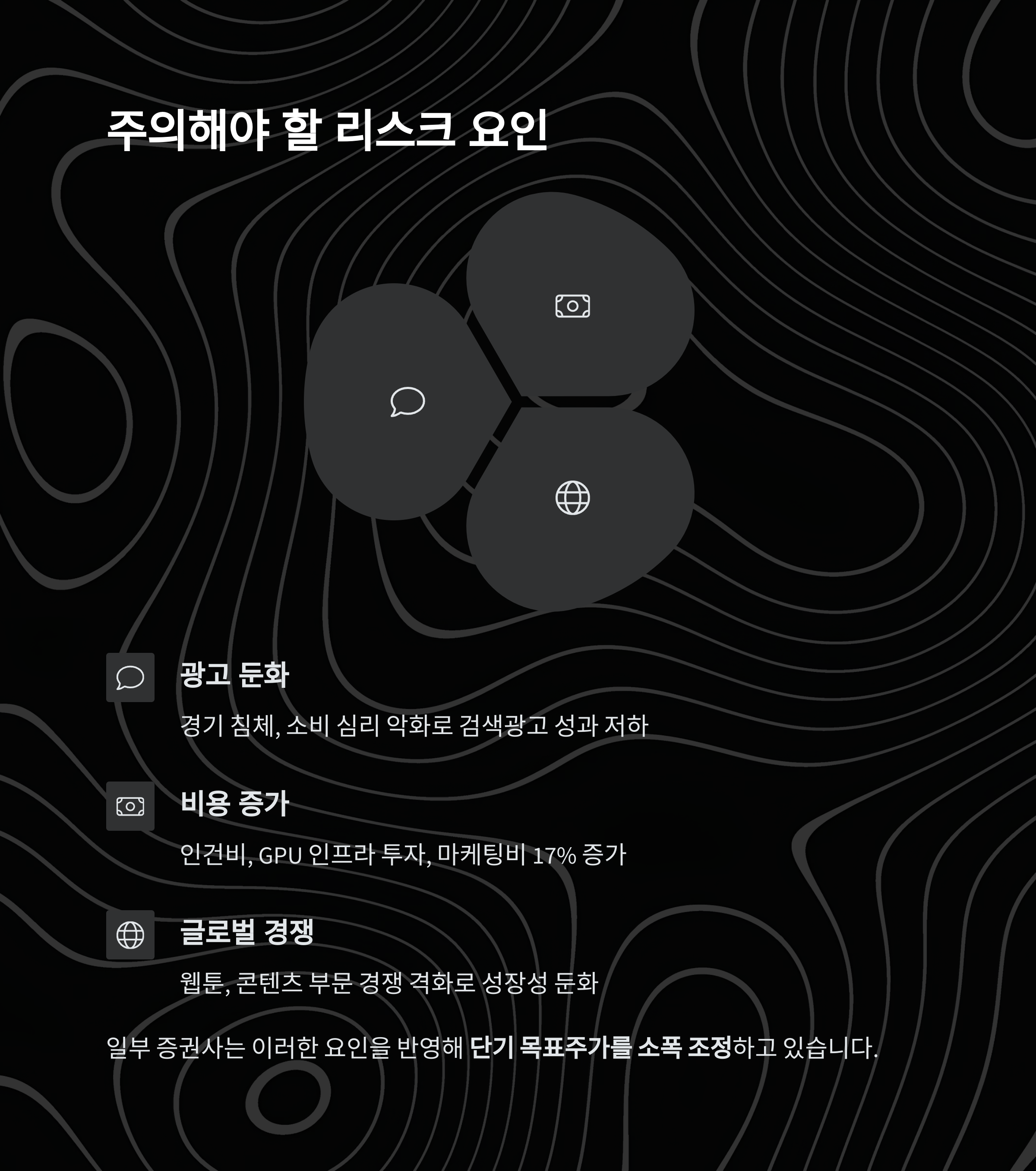 | 단기 리스크 | 광고 둔화, 비용 증가, 글로벌 경쟁 |
