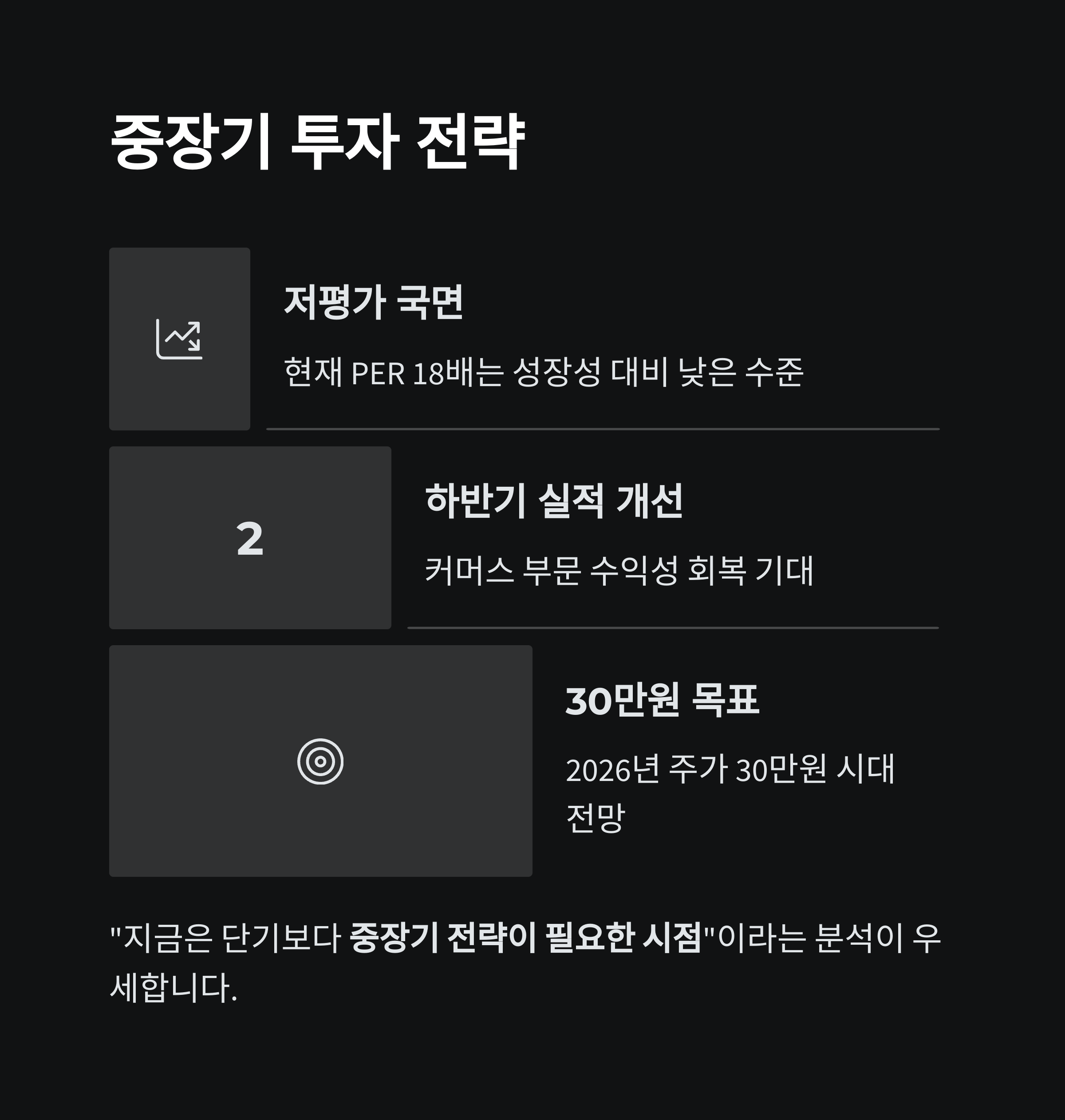 2026년에는 주가 30만원 시대에 근접할 수 있다는 전망도 제시되고 있습니다.