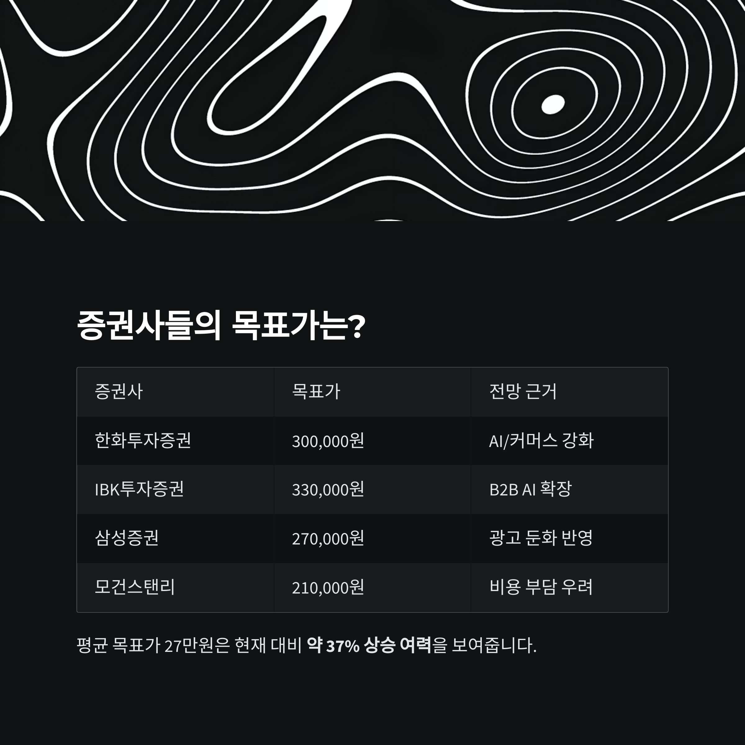 | 한화투자증권 | 300,000원 | AI/커머스 강화 수혜 기대 |