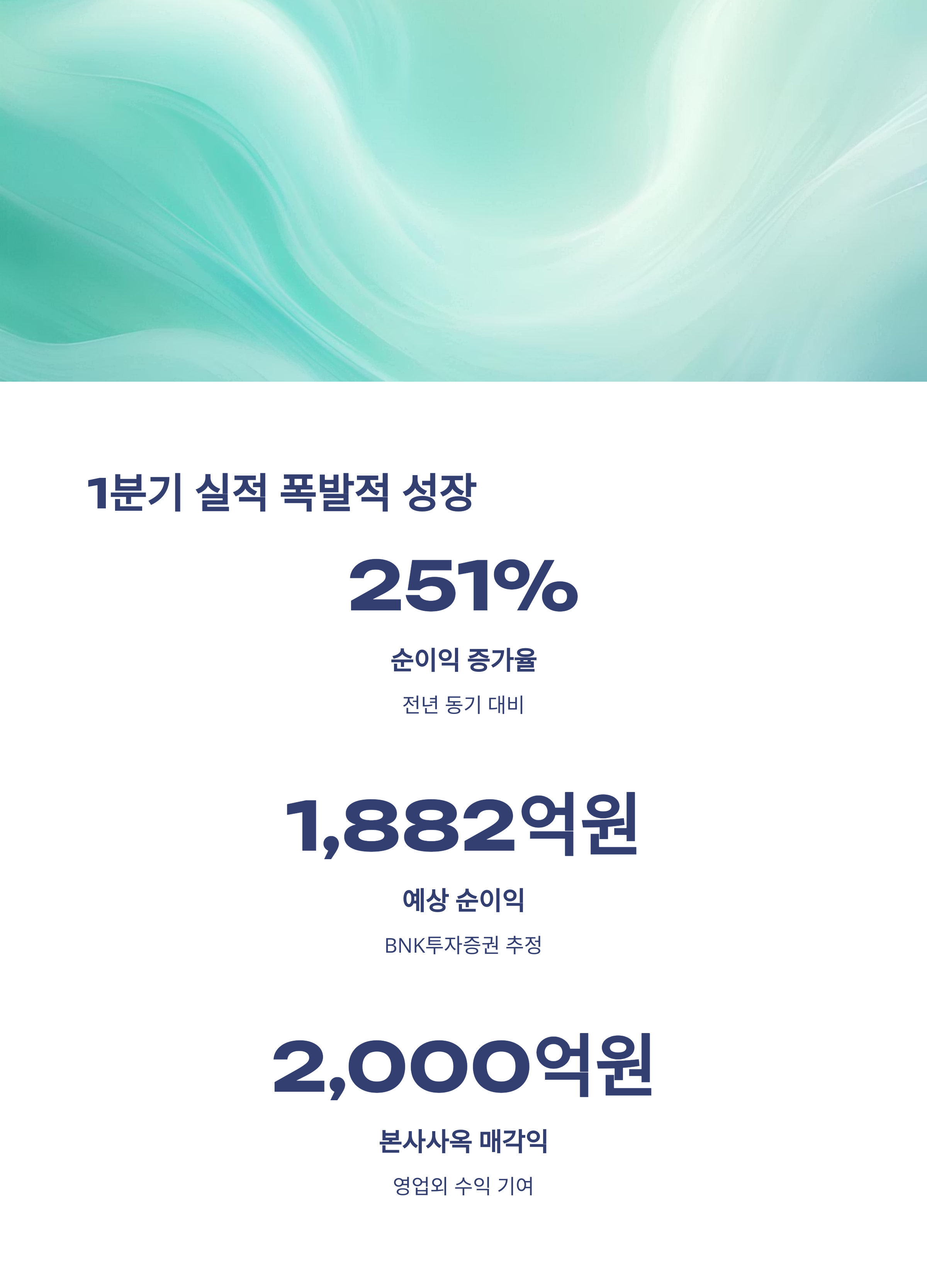 이는 본사 사옥 매각이익 2,000억원이 반영된 결과이며, 이를 제외해도 자회사 실적 회복이 실적을 견인하고 있습니다.