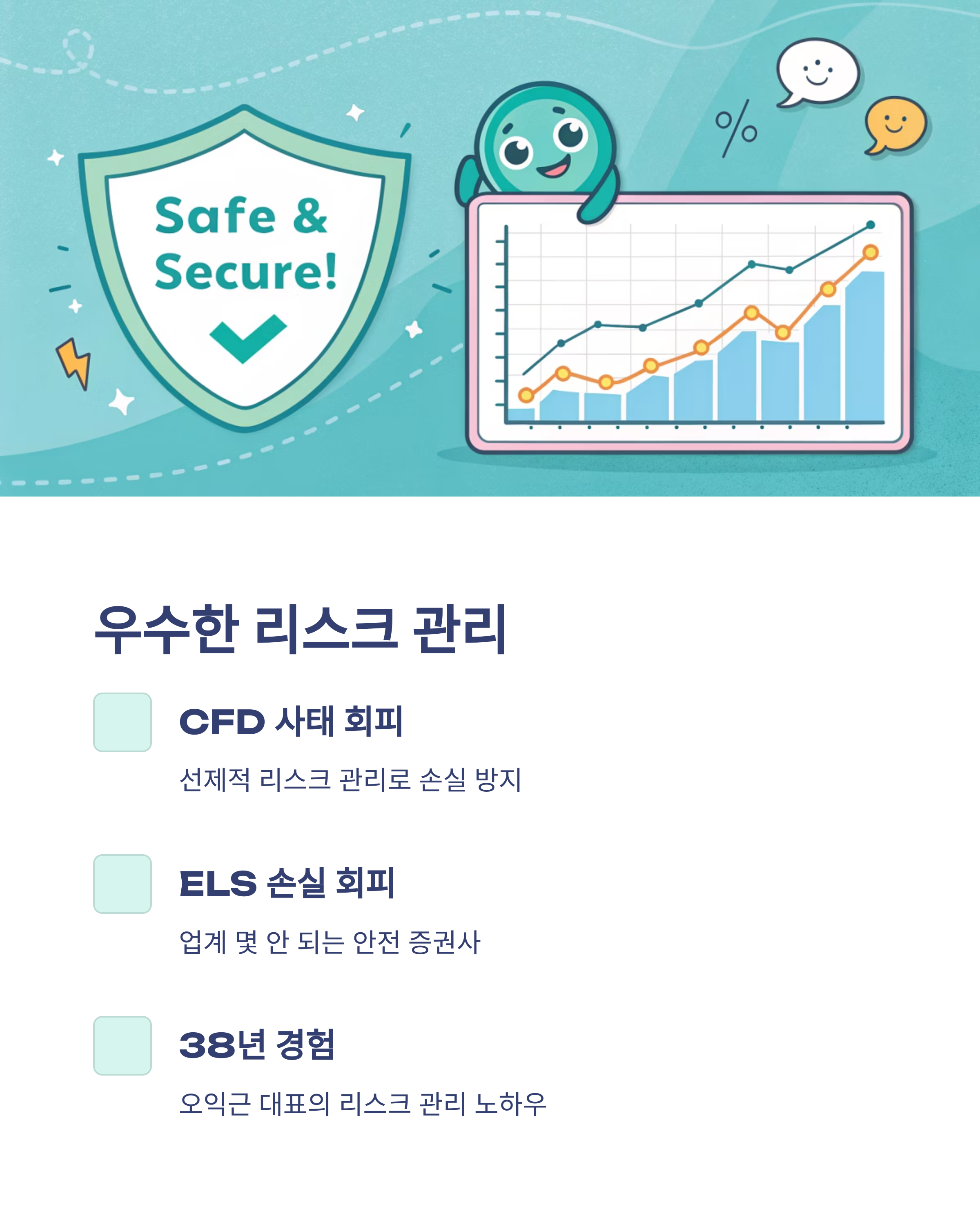 대신증권은 CFD 사태나 ELS 손실과 같은 리스크에 노출되지 않고 업계 내 선제적인 리스크 대응 능력을 보여주고 있습니다.