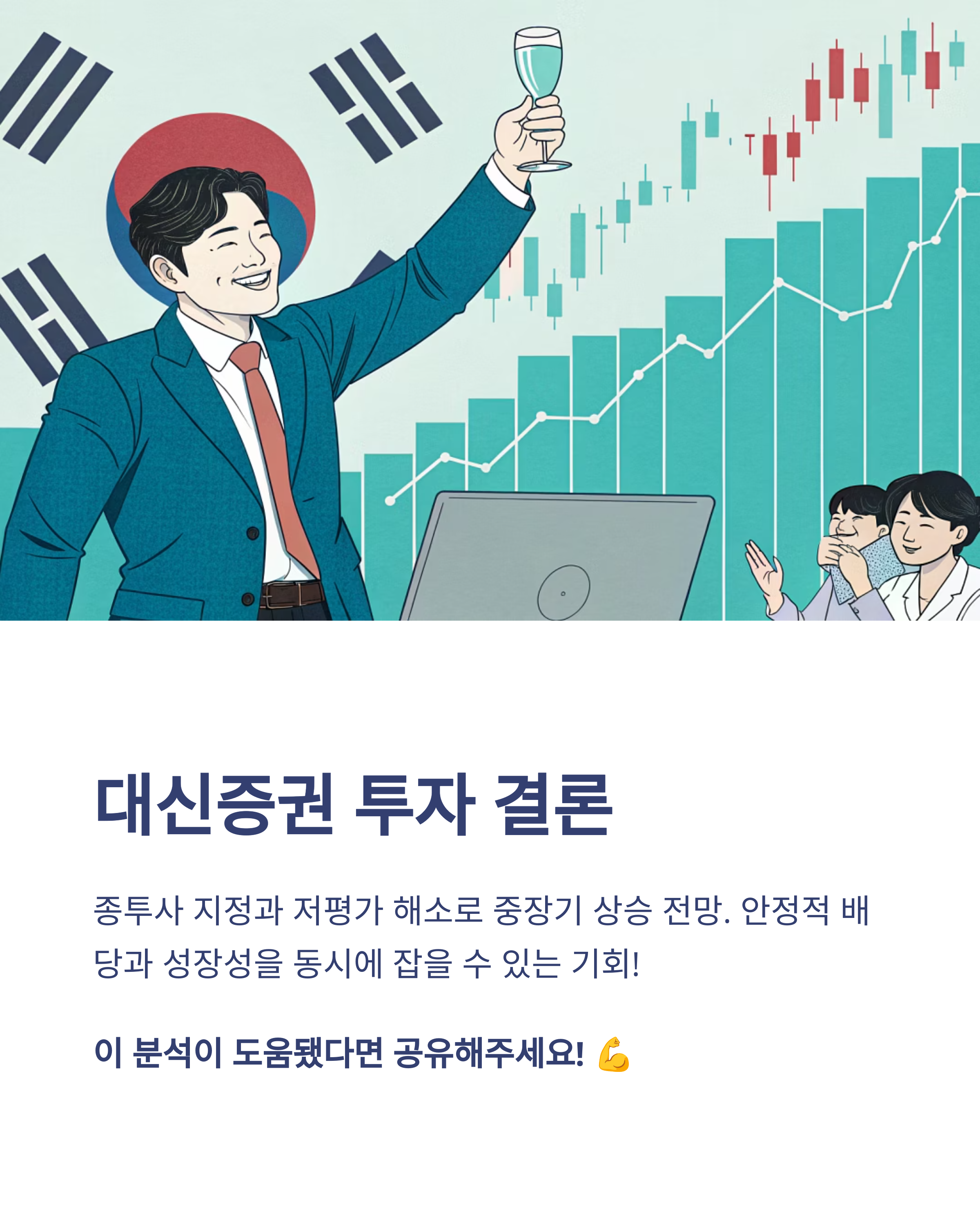 중장기 투자자로서 안정성과 성장성을 동시에 추구하고자 한다면, 대신증권은 포트폴리오 내 핵심 보유 종목으로 고려할 만합니다.