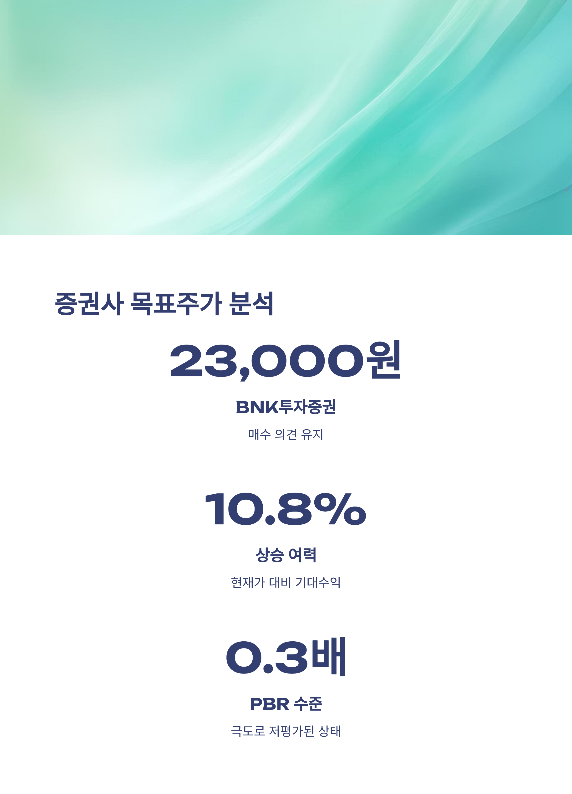 목표주가 23,000원까지의 상승 여력뿐 아니라, 실적 개선 및 사업 확장에 따라 그 이상의 주가 반등 가능성도 존재합니다.