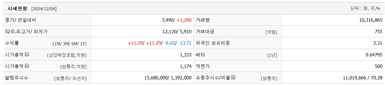 | 대상홀딩스 주가 상승 원인 알아보기 (0) | 2024.12.06 |