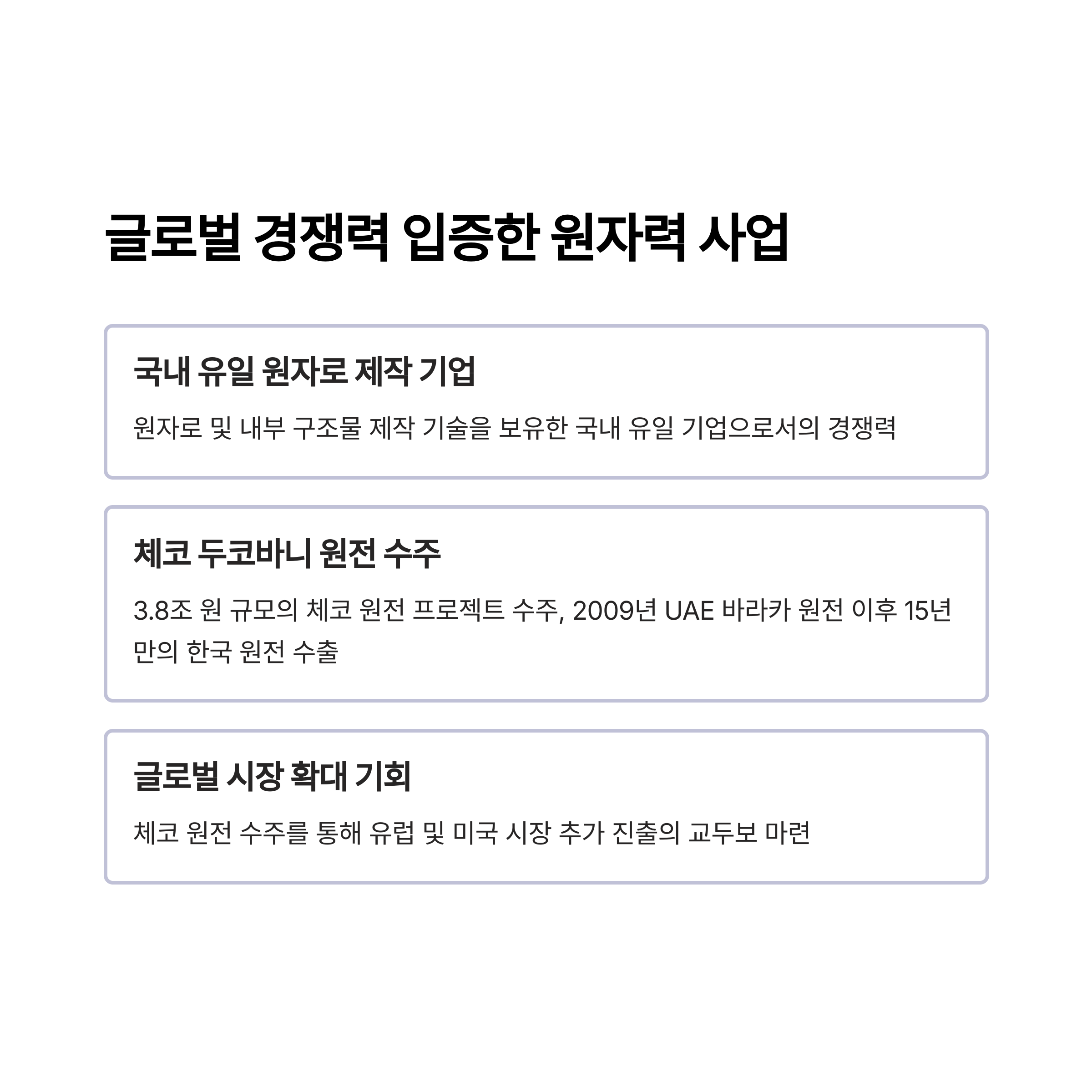 두코바니 원전 프로젝트(3.8조 원 규모)를 수주하며 글로벌 원전 시장에서