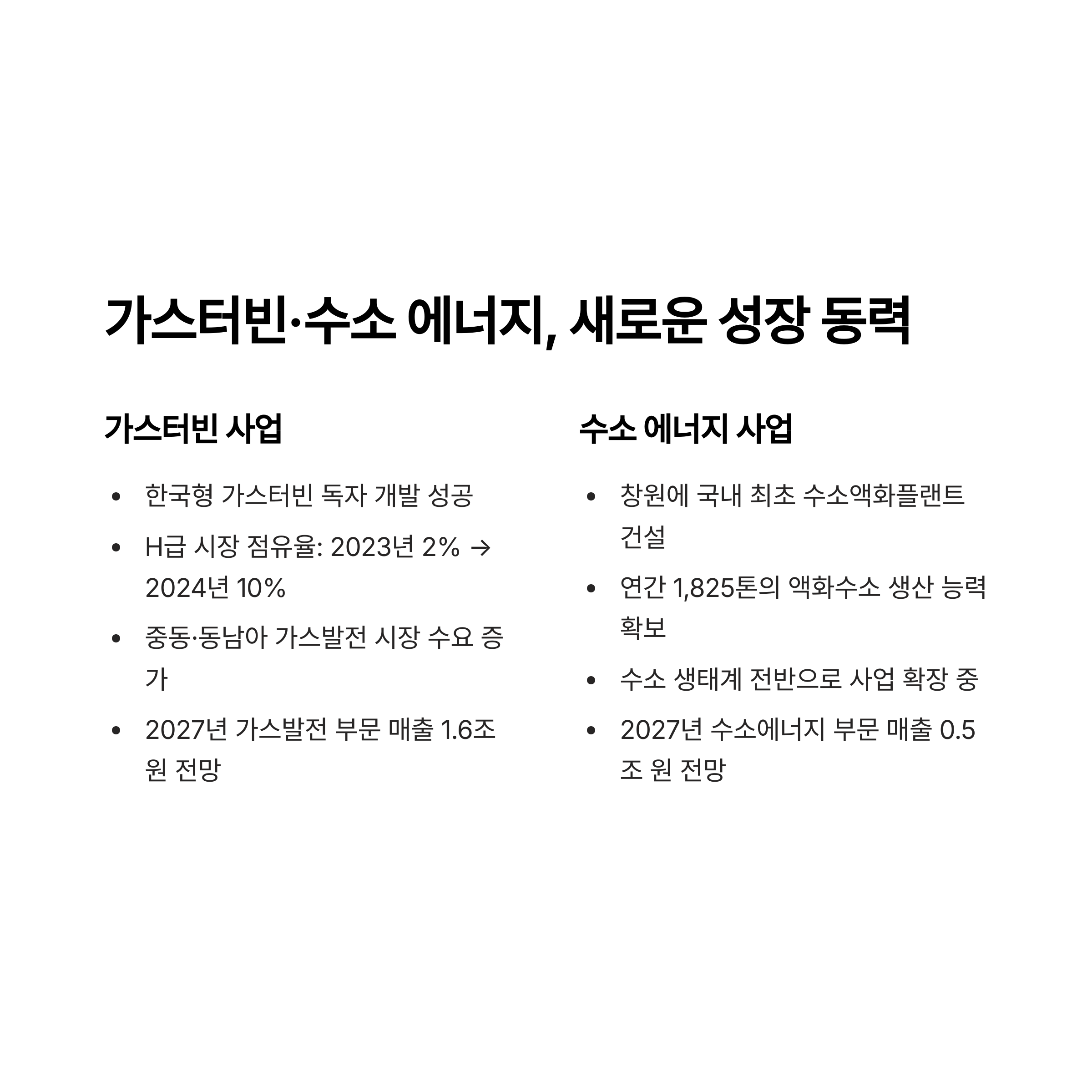 능력을 확보하며 수소 생태계 전반으로 사업을 넓히고 있습니다.