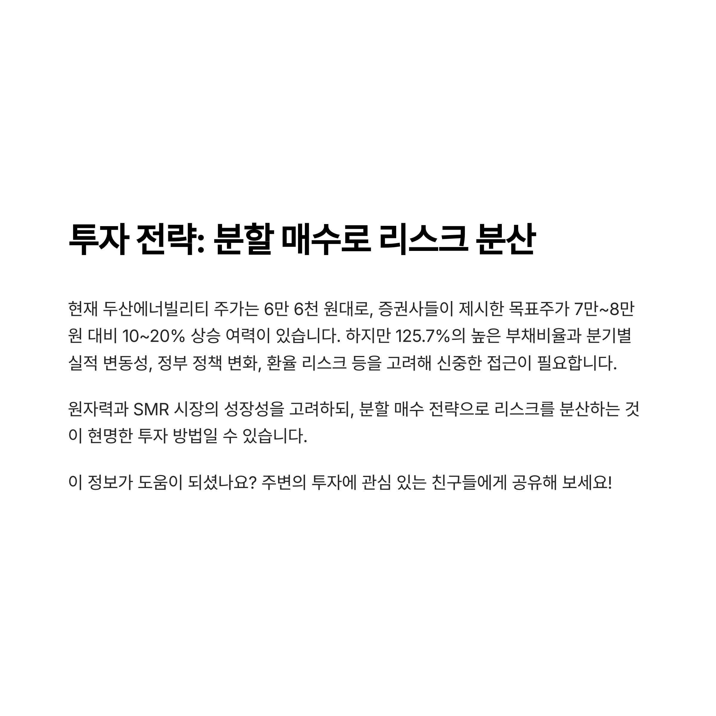 따라서 분할 매수로 리스크를 분산하는 전략이 유효할 수 있습니다.