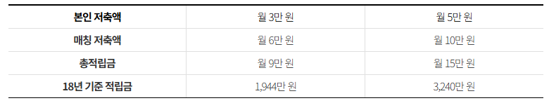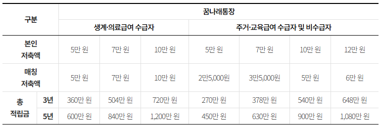 생계·의료급여 수급자의 경우 저축한 금액과 동일한 금액을, 비수급자의 경우에는 저축액의 50%를 매칭 적립받을 수 있습니다.