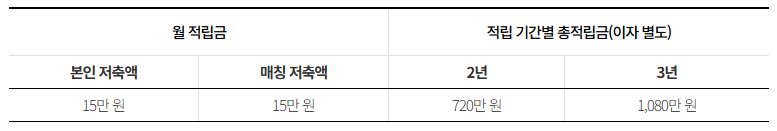 이 통장의 가장 큰 특징은 저축액의 2배를 서울시가 매칭하여 적립해준다는 점입니다. 예를 들어 월 5만 원을 저축하면 서울시가 10만 원을 추가로 적립해 총 15만 원이 매월 쌓이게 됩니다.