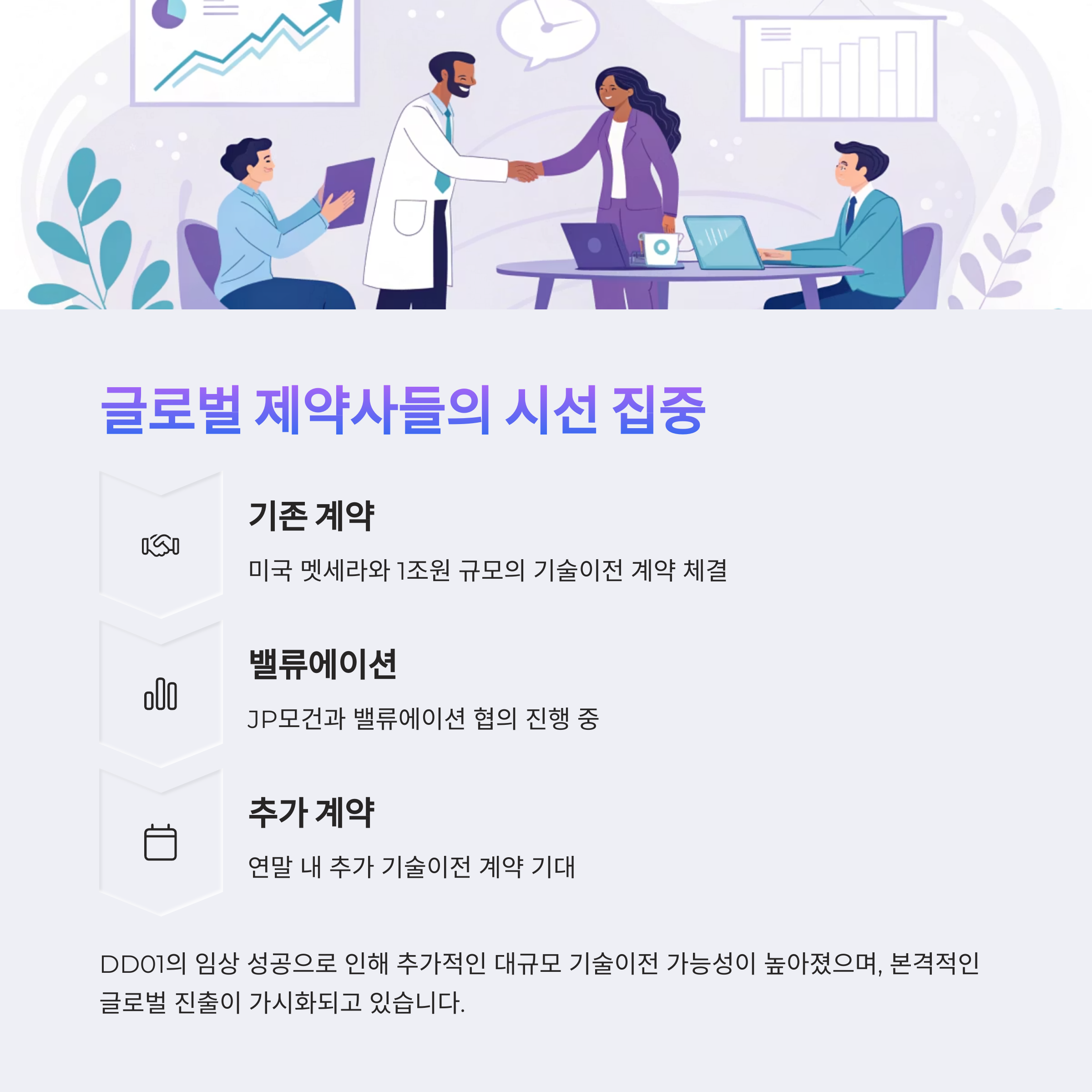 DD01의 임상 성공으로 인해 추가적인 대규모 기술이전 가능성이 높아졌으며,