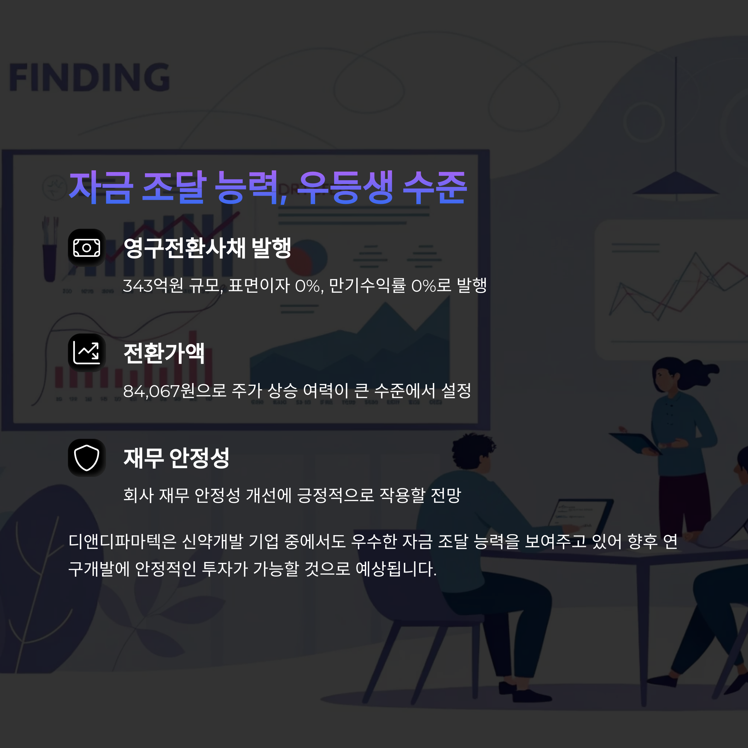 디앤디파마텍은 343억원 규모의 영구전환사채를 표면이자 0%, 만기수익률 0%로 발행했습니다.