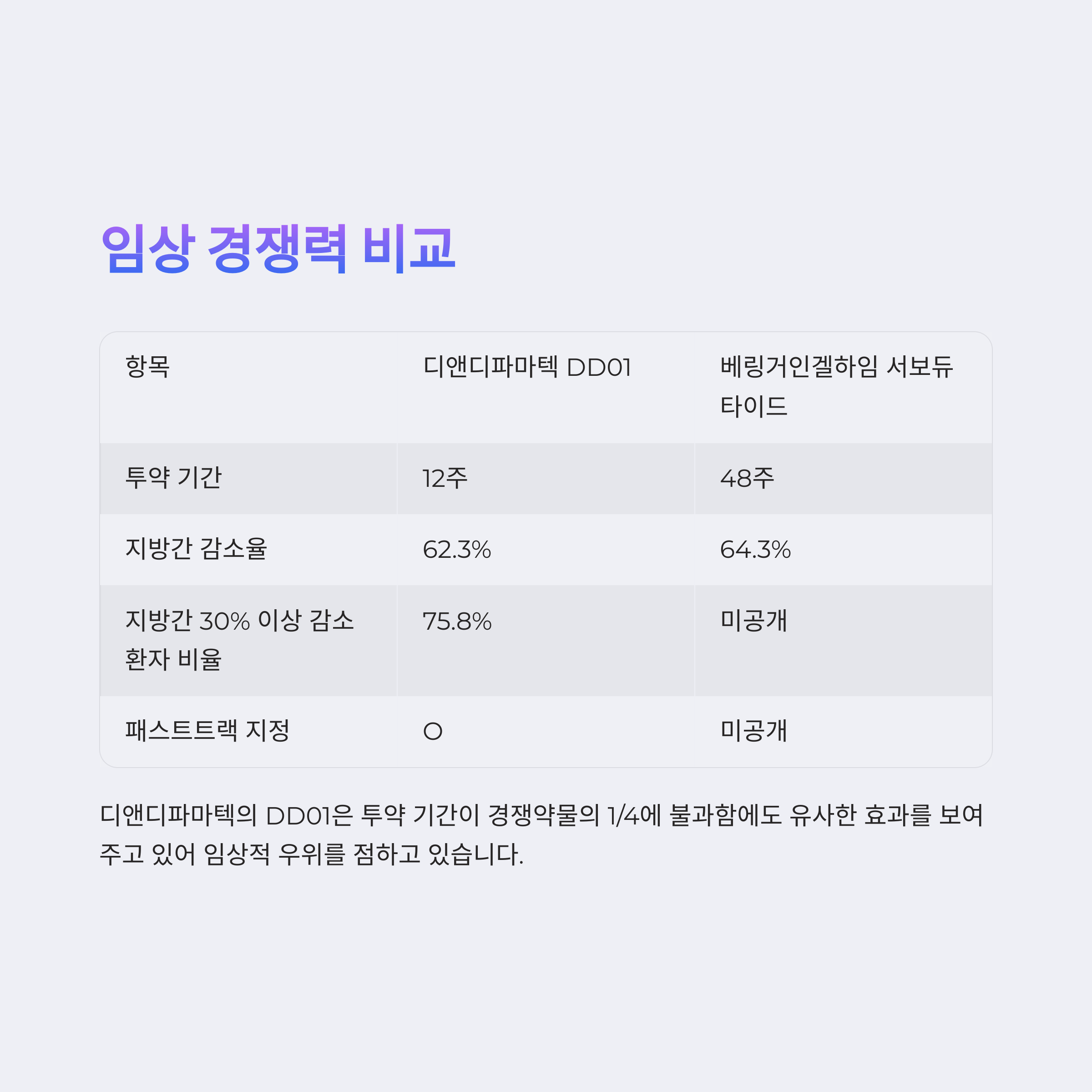 DD01, 12주만에 경쟁 약물 ‘서보듀타이드’ 따라잡았다