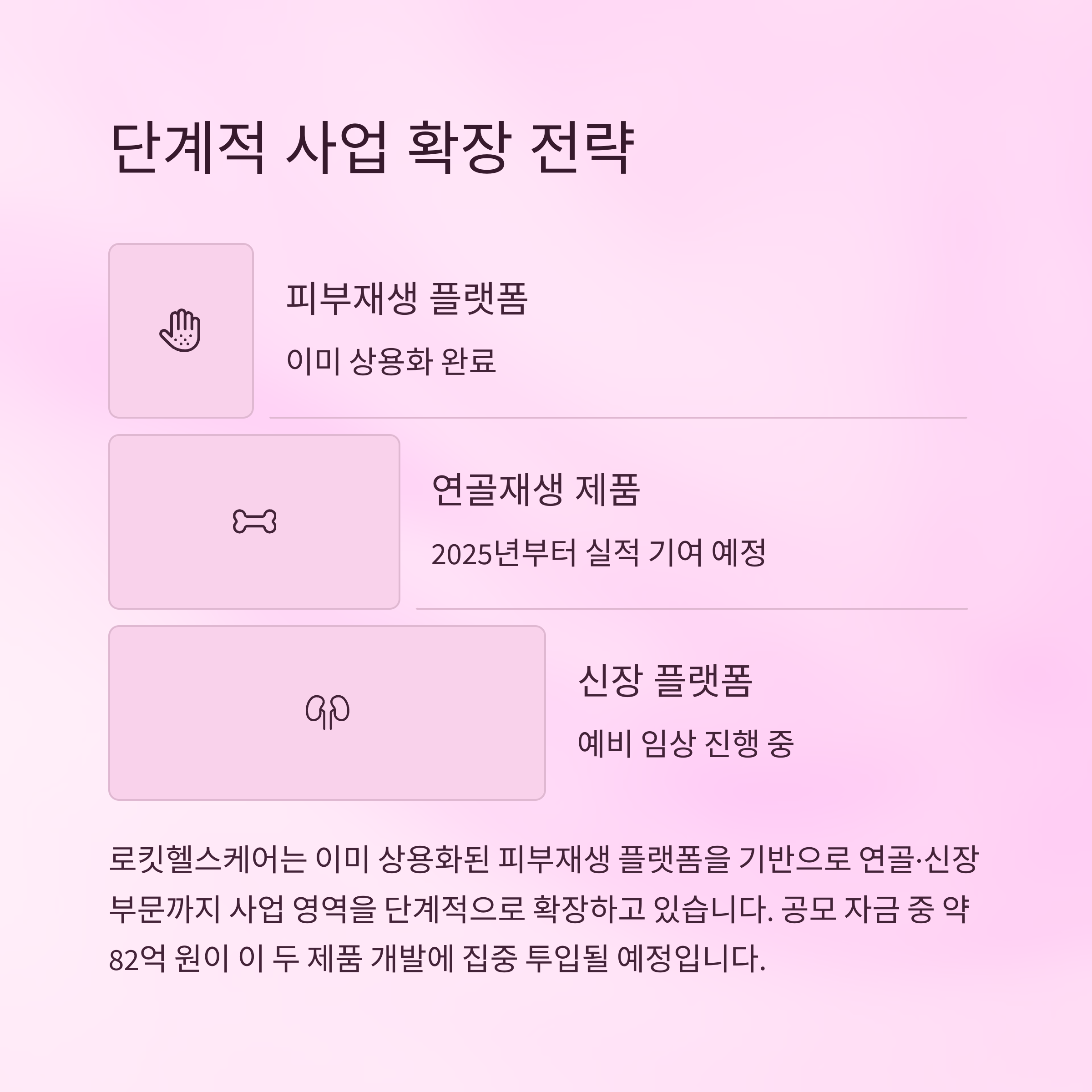 연골·신장 부문까지 사업 영역을 단계적으로 확장하고 있습니다.