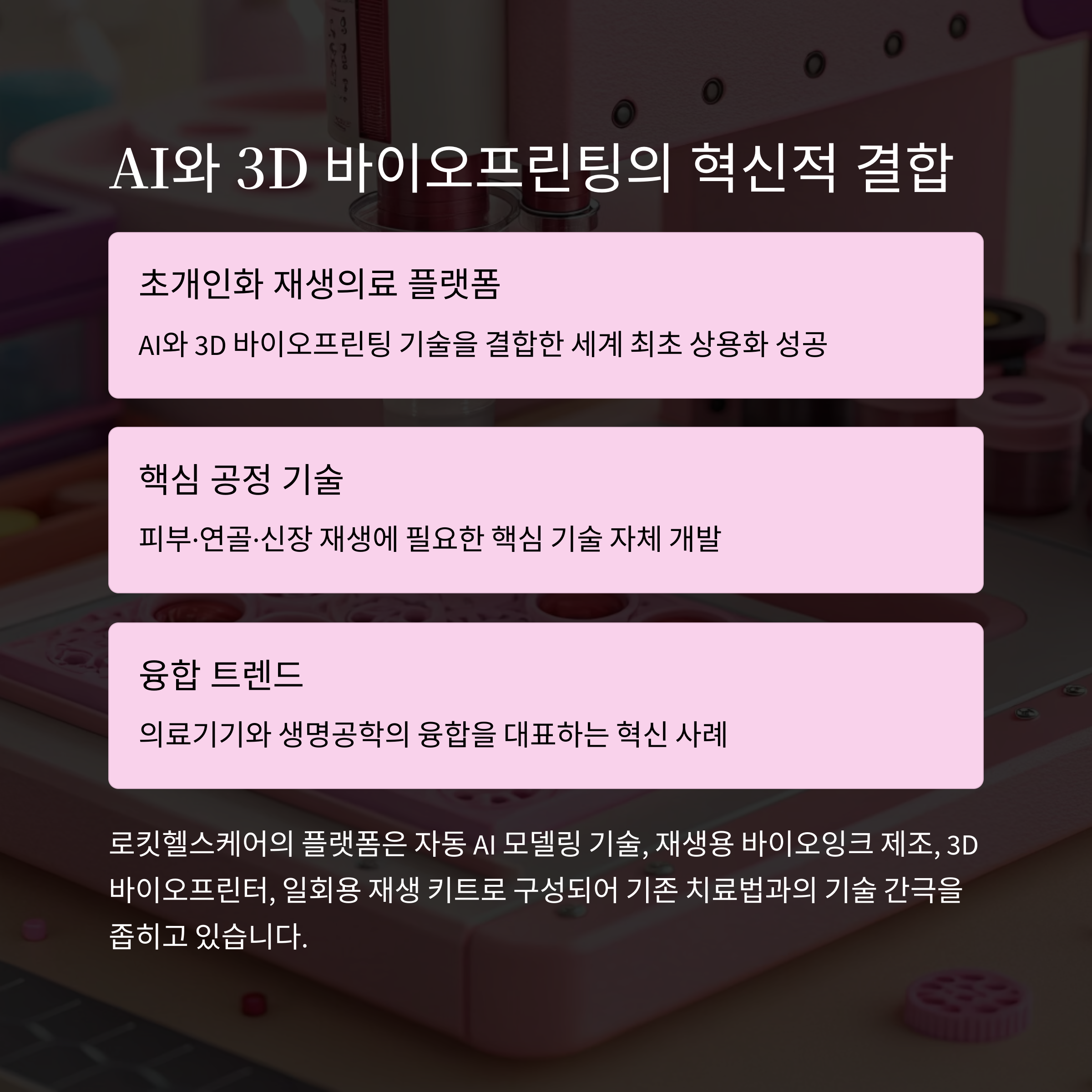 로킷헬스케어는 AI+재생의료 융합 플랫폼이라는 미래형 산업 포지셔닝을 바탕으로