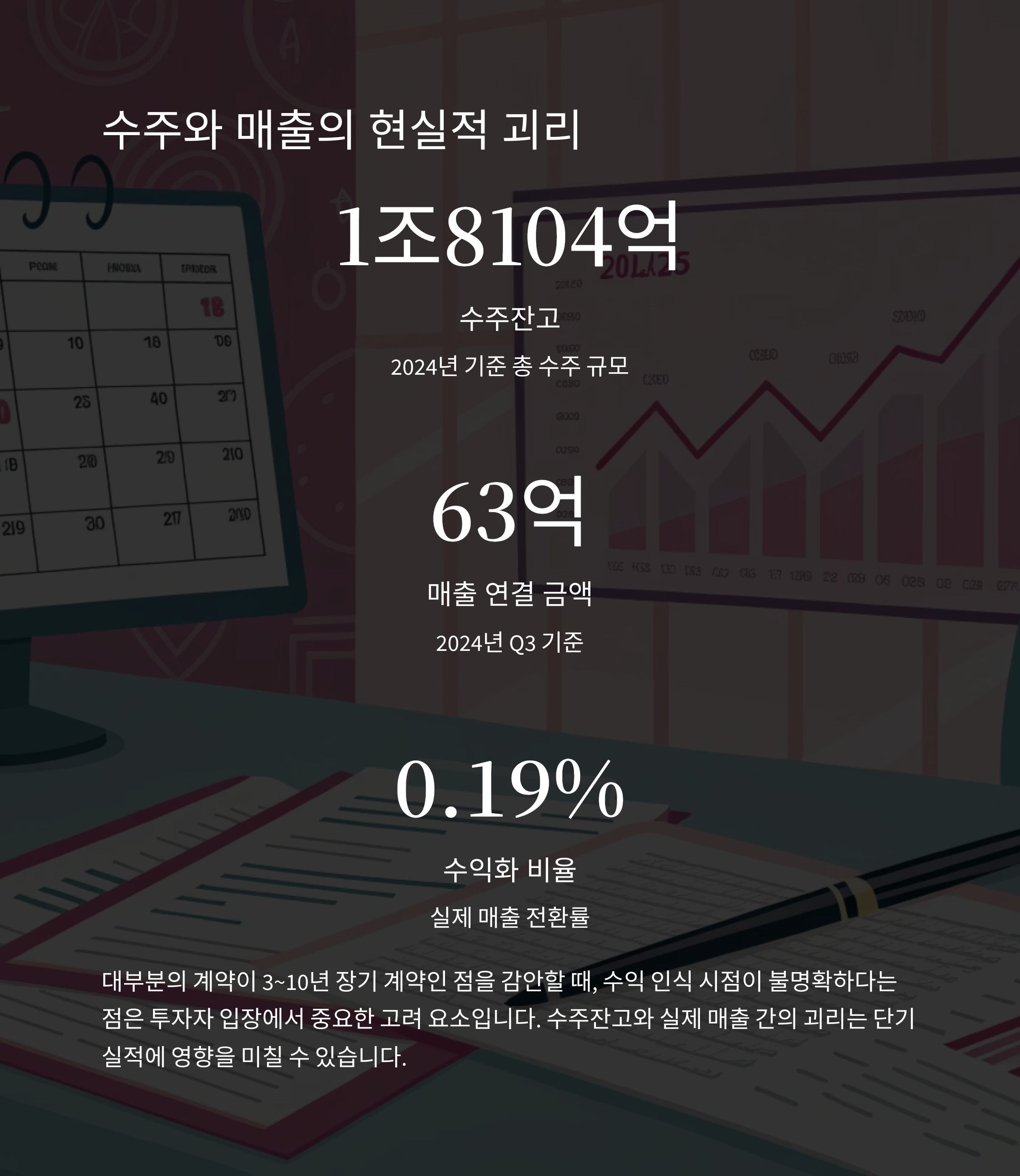 또한, 수주와 매출 전환 사이의 시간 지연성은 실적 기대치를 낮출 수 있습니다.