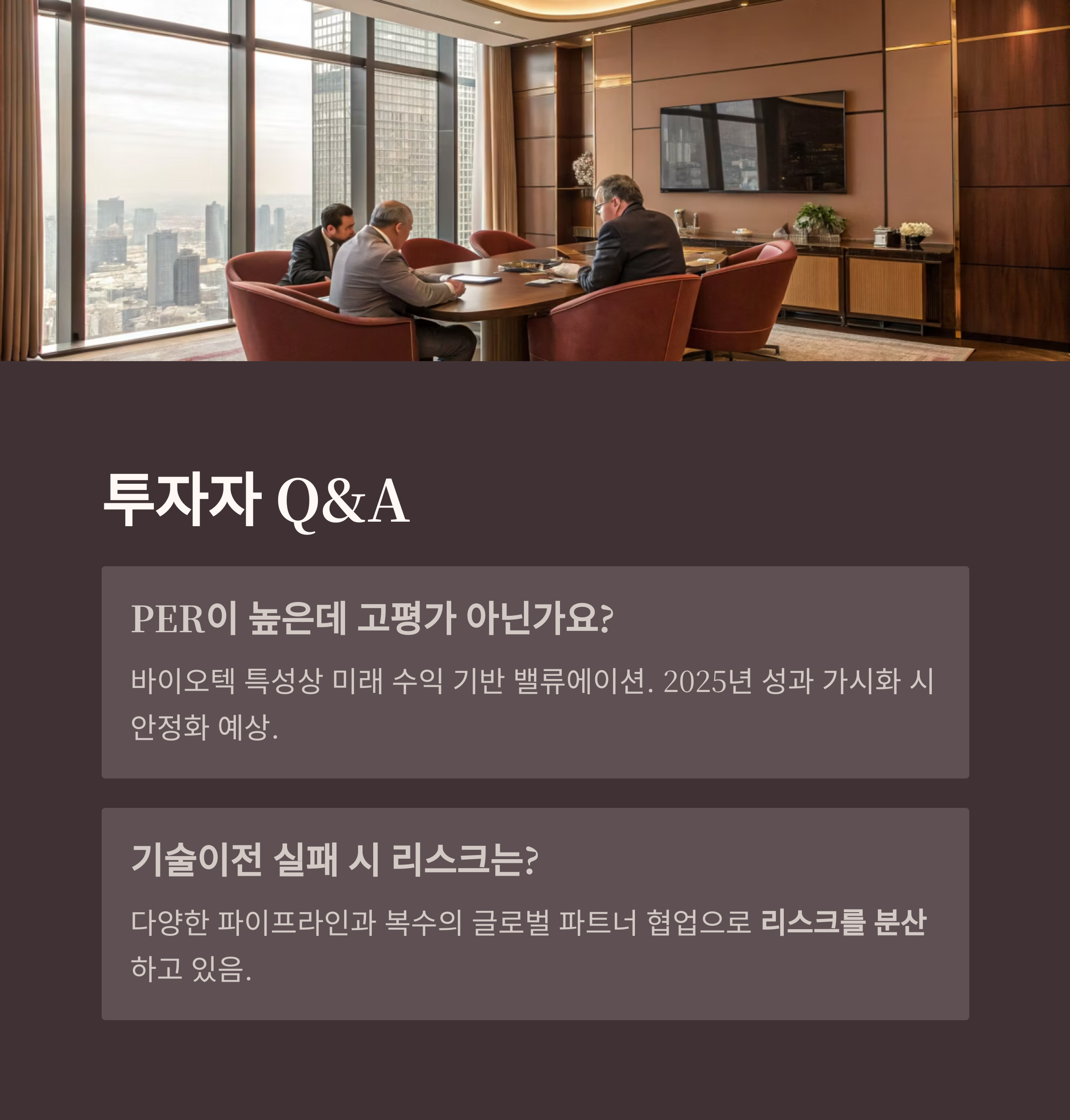 CDMO(위탁개발생산)를 통한 파이프라인 가속화에 결정적 기여를 할 것입니다.