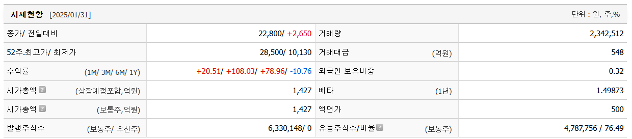 시가 총액과 장중 거래량을 살펴보면 단기 포트폴리오 구성에 도움이 됩니다. 마음AI의 시가 총액은 1427억 원이며 장중 거래량은 2,342,512원 을 기록했습니다. 대주주의 정보는 중요하지 않을 수 있으나 장기적인 관점에서는 확인하는 것이 좋습니다.