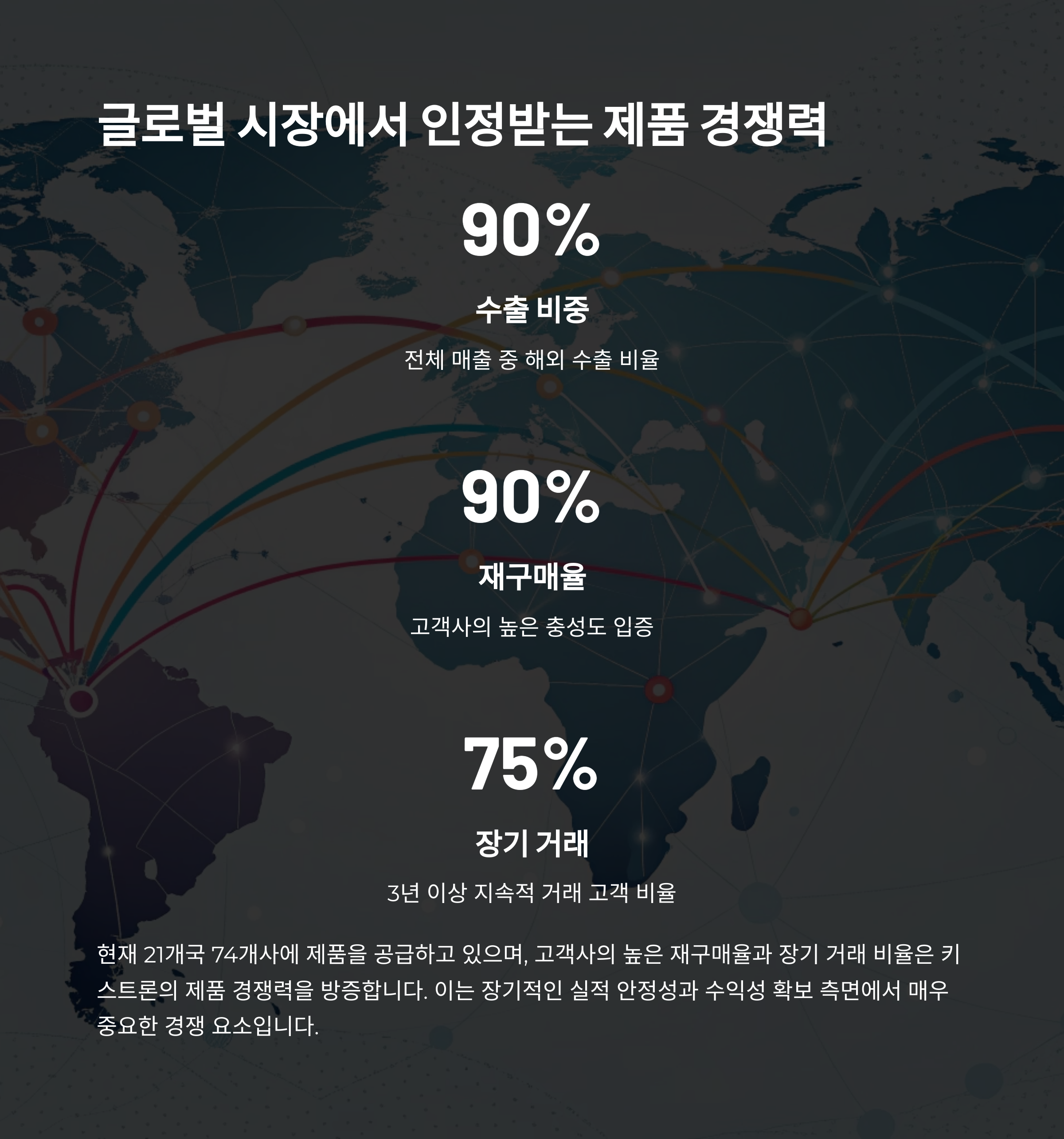 | 고객 기반 | 90% 이상 재구매율, 글로벌 74개사 거래처 확보 |