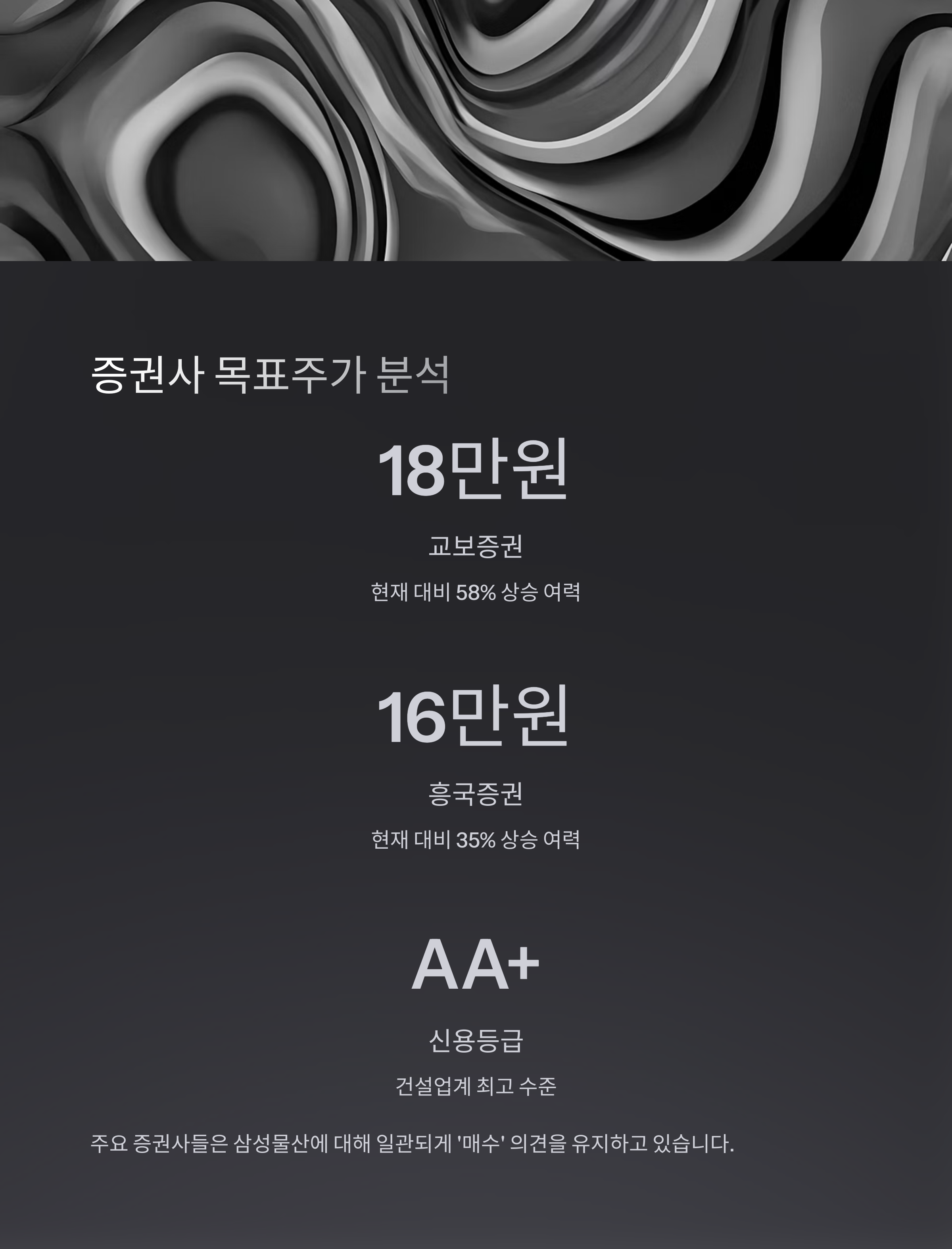 건설·바이오 양축 성장과 안정된 재무구조로 중장기적 상승 기대감이 높아지고 있습니다.