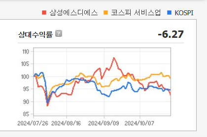 시가 총액과 장중 거래량도 단기 포트폴리오를 구성할 때 살펴봐야 합니다. 삼성에스디에스의 시가 총액은 10조9799억 원이며 장중 거래량은 82,746원 을 기록했습니다. 대주주의 정보는 중요하지 않을 수도 있지만 장기적인 관점에서는 확인하는 것이 좋습니다.