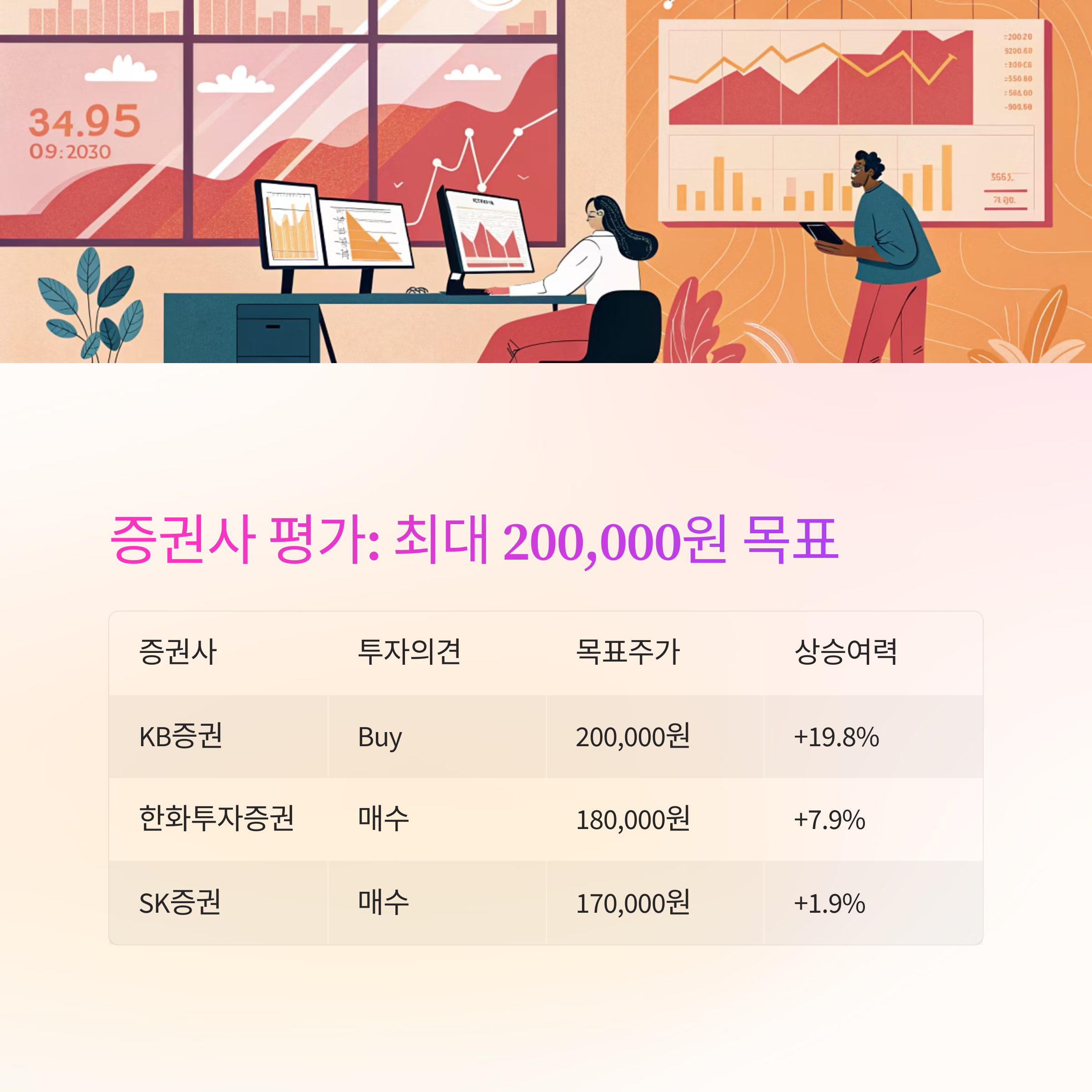 특히 KB증권은 200,000원의 목표주가를 제시하며 약 19.8%의 상승 여력을 보고 있습니다.