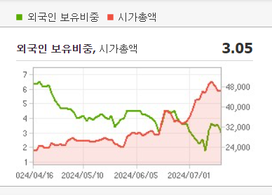 시가 총액과 장중 거래량을 살펴봐야 단기 포트폴리오를 잘 구성할 수 있습니다. 삼천당제약의 시가 총액은 4조5789억 원이며 장중 거래량은 1,070,251원 을 기록했습니다. 대주주의 정보는 크게 중요하지 않지만 장기적인 관점에서는 확인하는 것이 좋겠습니다.