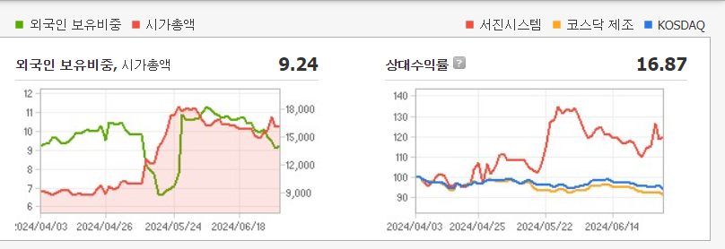 만약 단기 포트폴리오를 구성한다면 시가 총액과 장중 거래량을 살펴봐야 합니다. 서진시스템의 시가 총액은 1조8967억 원이며 장중 거래량은 685,695원 을 기록했습니다. 대주주의 정보는 크게 중요하지 않지만 장기적인 관점에서는 확인해보는 것이 좋습니다.