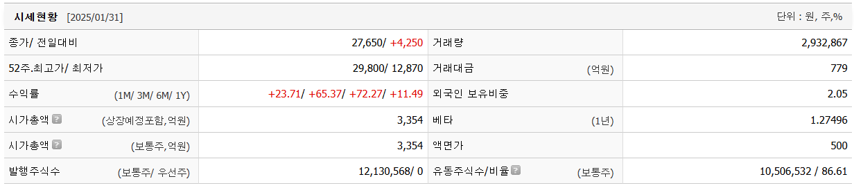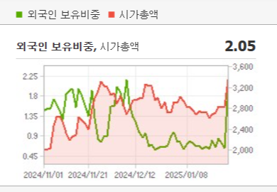 - 거래량 변동성: 2025년 1월 평균 거래량 35만 주 대비 최근 66만 주로 급증하며 투기적 거래 우려