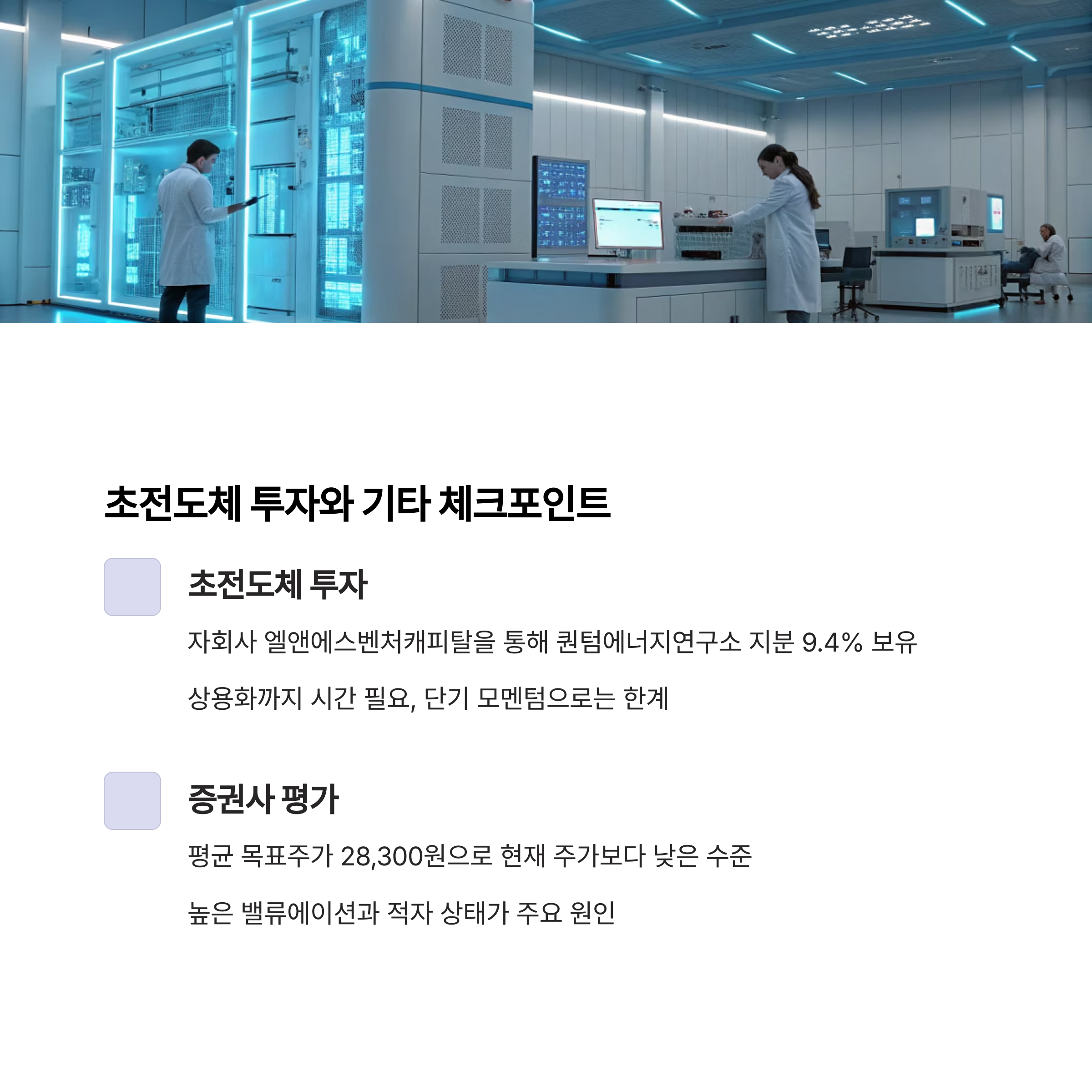 하지만 이는 아직 상용화 단계가 아니며, 기술 성과가 확인되기까지 상당한 시간이 필요해 단기적인 주가 모멘텀으로 보기엔 무리가 있습니다.