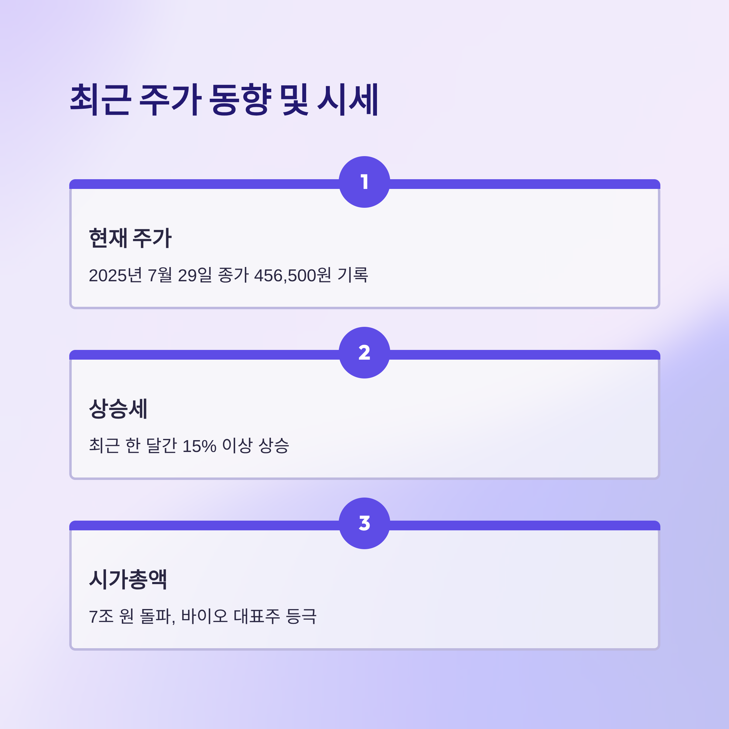 2025년 7월 기준, 알테오젠의 주가는 약 456,500원으로 형성되어 있으며, 애널리스트들의 평균 목표가는 약 565,000원으로 제시되어 있습니다. 이는 약 24%의 상승 여력을 내포한 수치입니다.