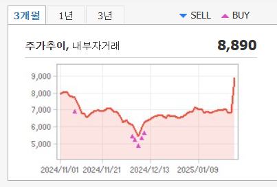 - 저항선: 8,890원 돌파 시 10,000원대 진입 가능.