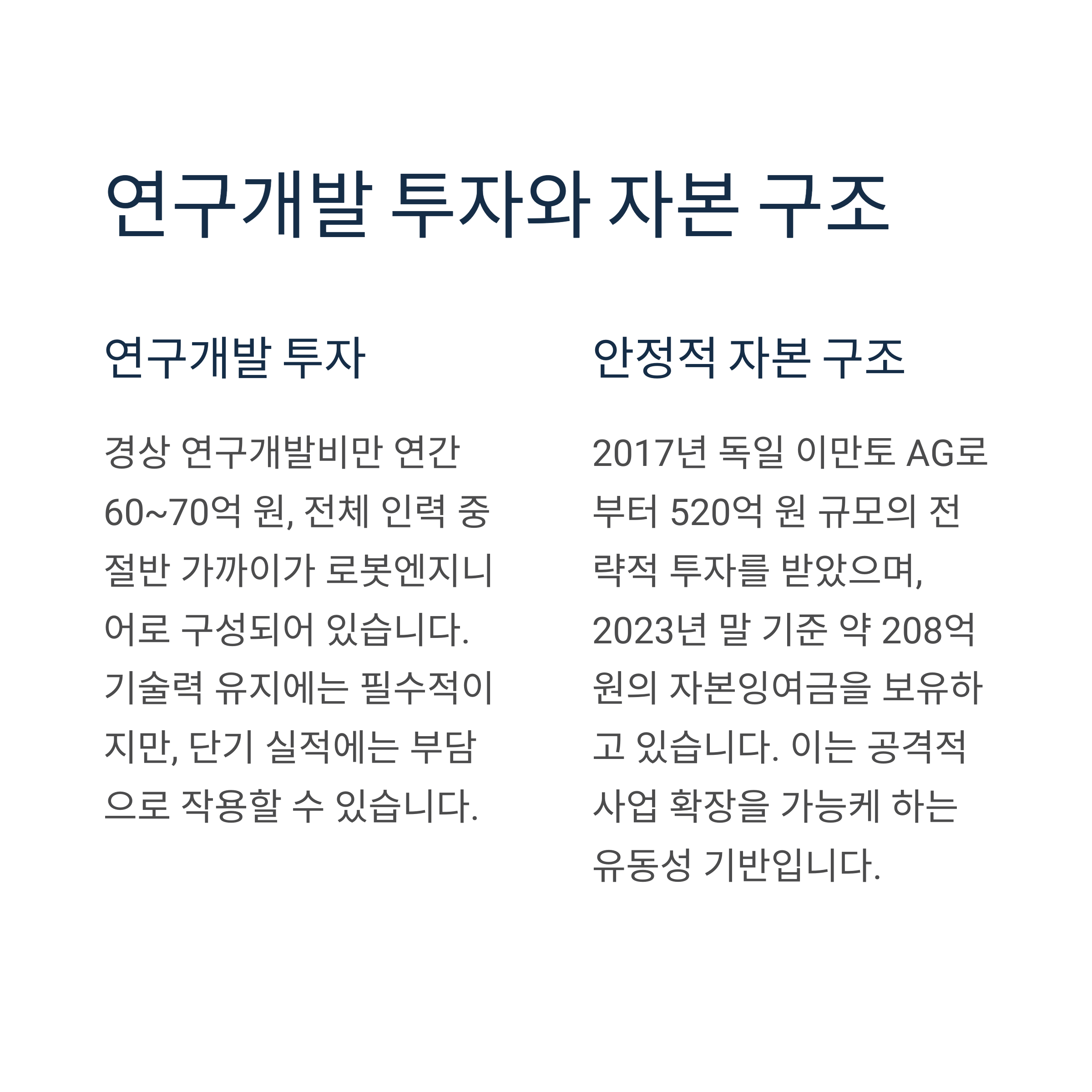 기술력 유지에는 필수적이지만, 실적 부담으로 작용할 수 있는 요소입니다.