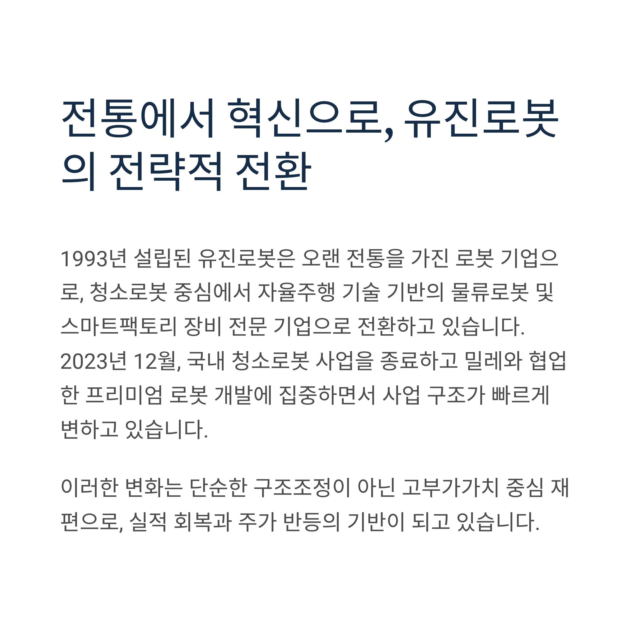 1. 전통에서 혁신으로, 유진로봇의 전략적 전환