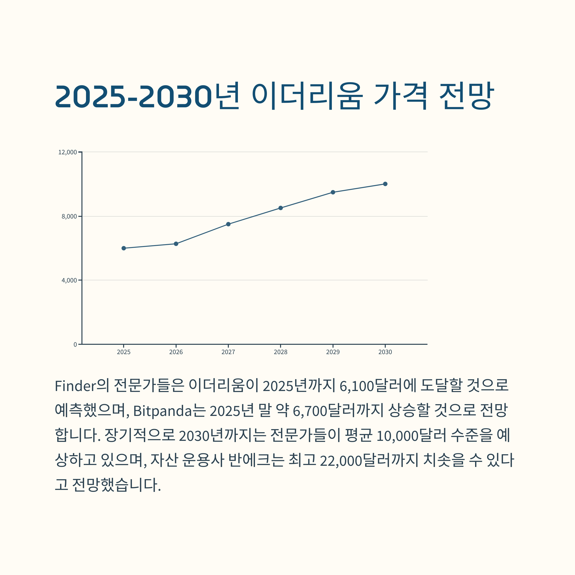 다양한 예측 기관들은 2025년 말까지 이더리움 가격이 5,000~6,000달러에 이를 것으로 보고 있습니다.