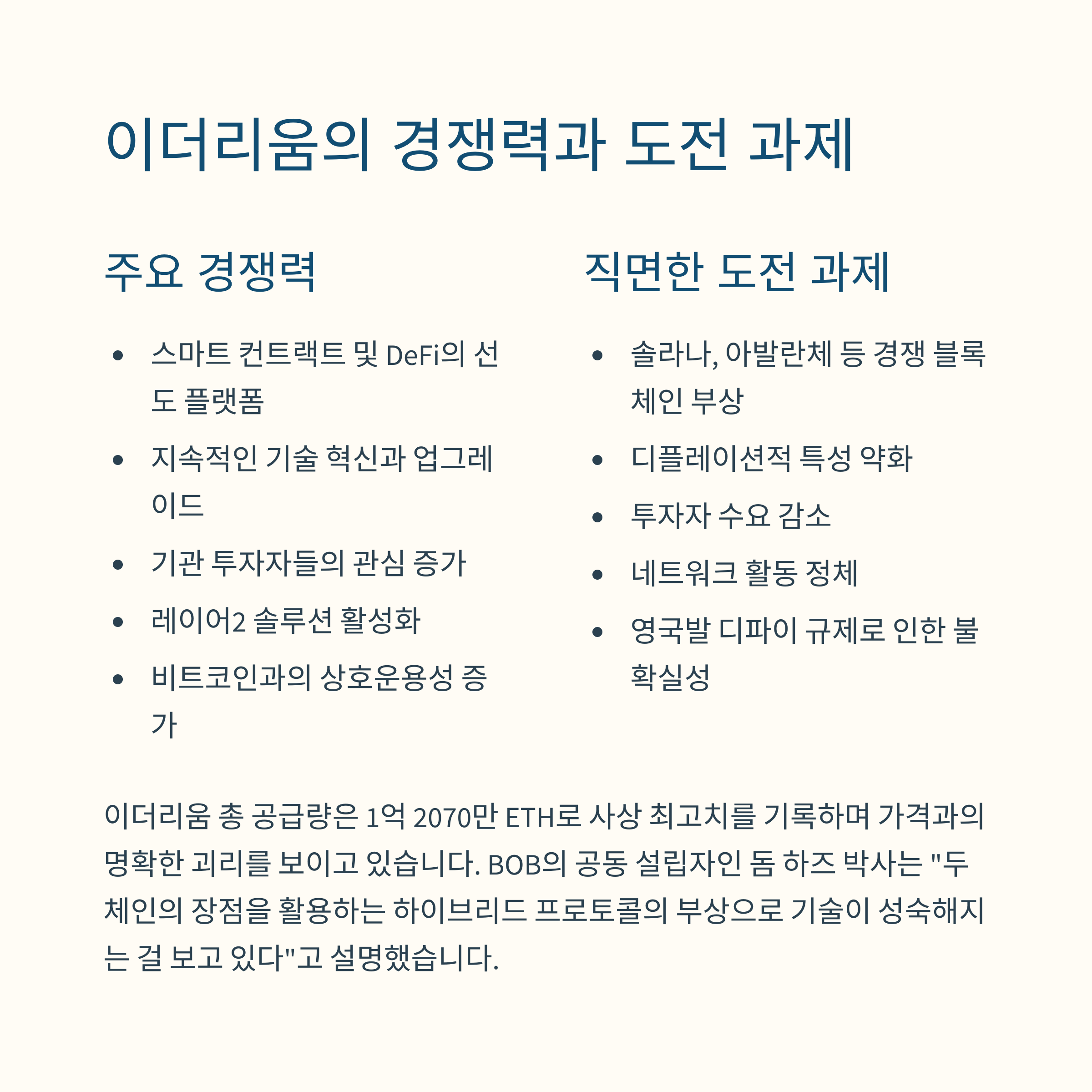 이더리움은 기술적 진보와 생태계 신뢰도를 무기로 삼고 있지만,
