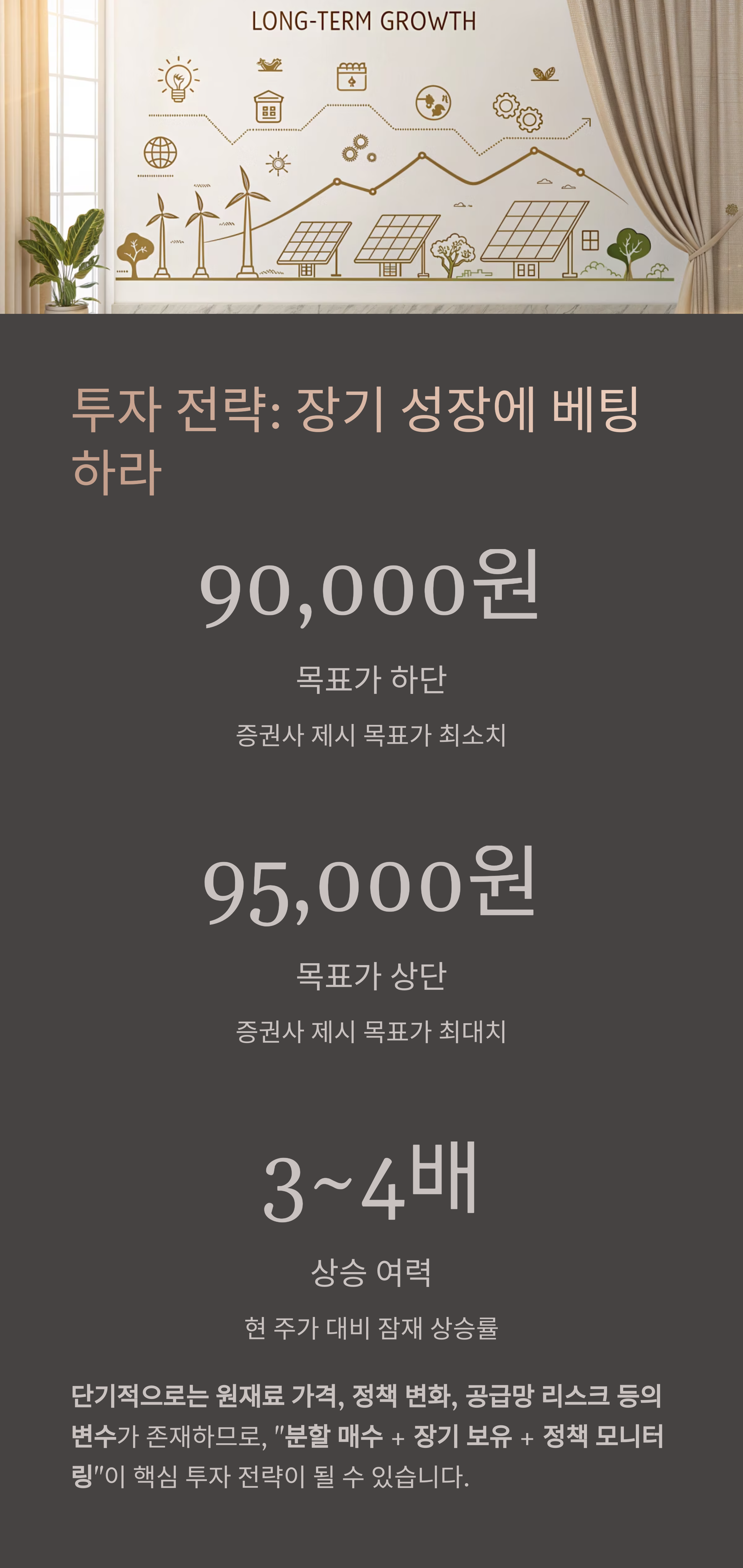 증권사 목표가는 90,000~95,000원으로 제시되고 있으며, 분할 매수와 장기 보유 전략이 적합합니다.