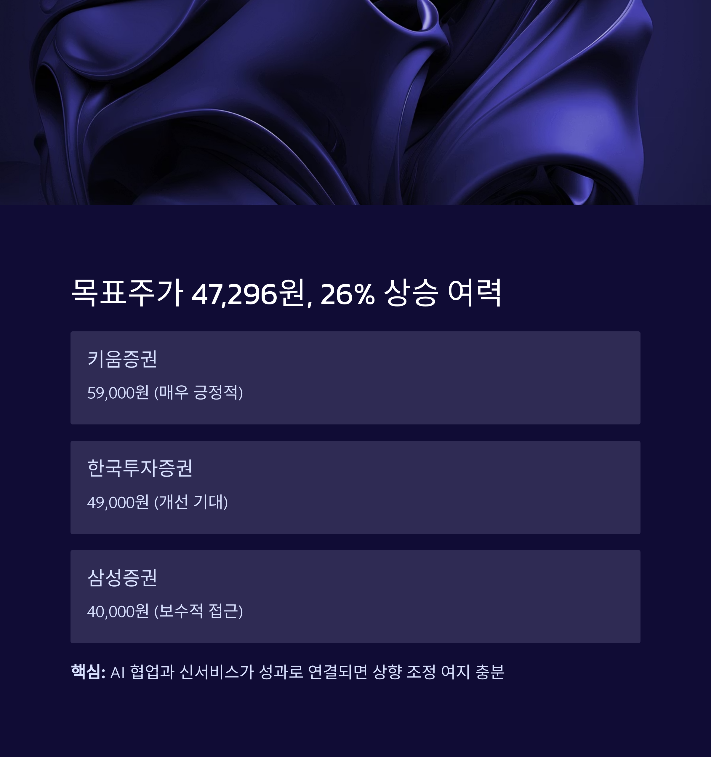 핵심 요약: AI 협업과 신서비스가 성과로 연결된다면 상향 조정 여지가 충분합니다.