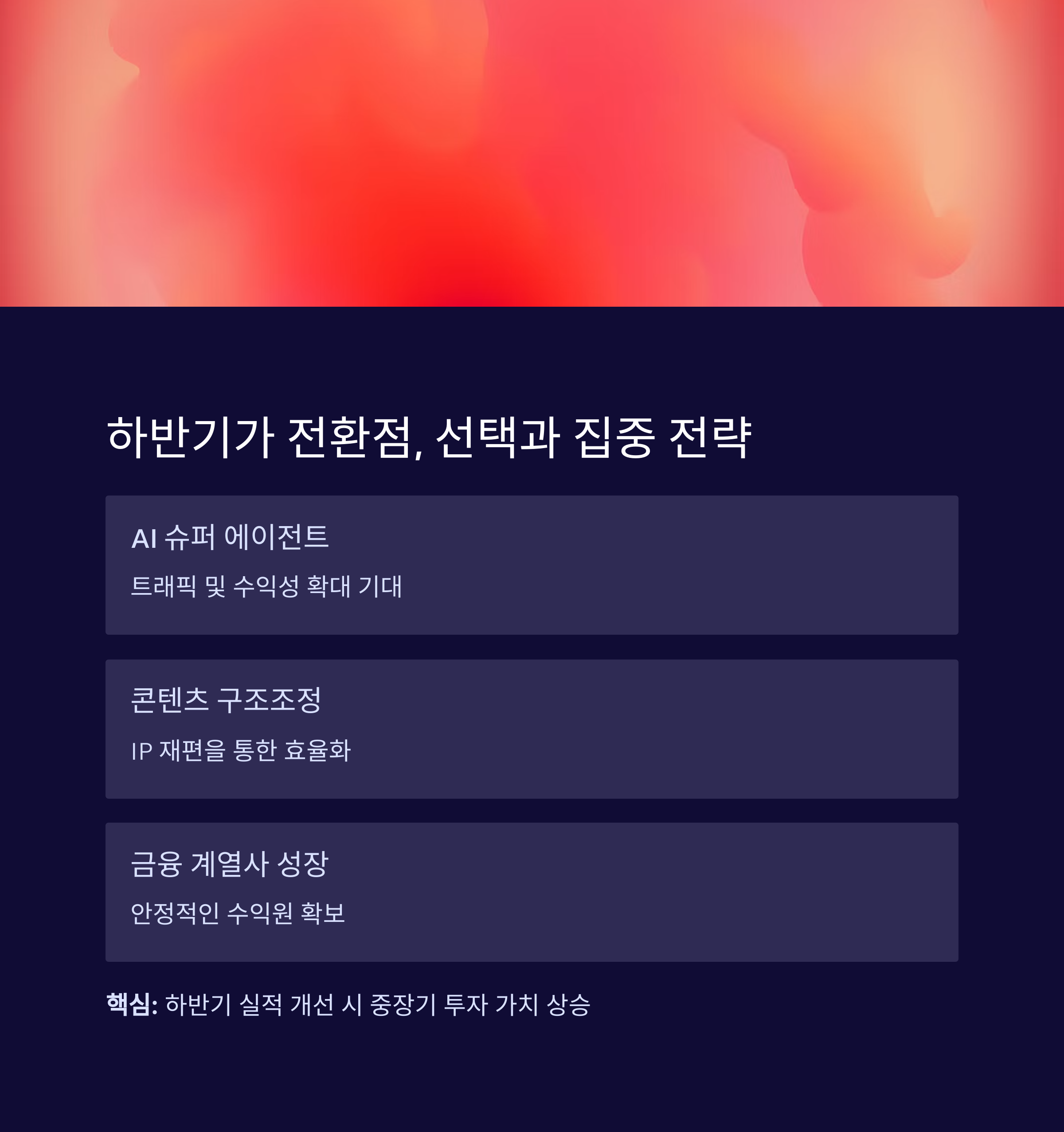 게임·미디어 중심 콘텐츠 부문의 구조조정이 단기적으로는 실적에 부담을 줄 수 있습니다.