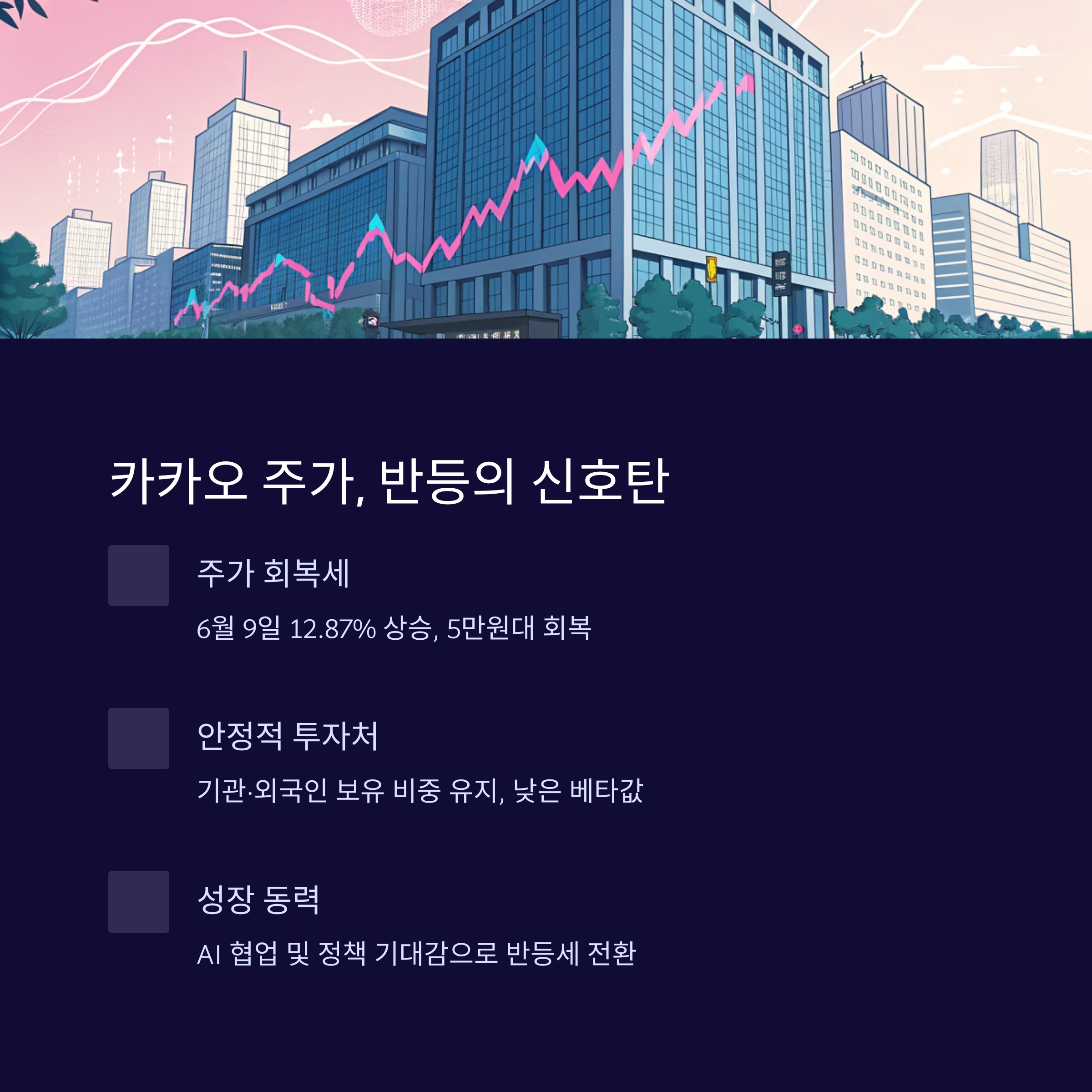카카오는 2025년 상반기 실적 부진과 함께 주가 하락세를 겪었으나, AI 협업 및 정책 기대감으로 반등세에 돌입했습니다.
