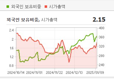 만약 단기 포트폴리오를 구성한다면 시가 총액과 장중 거래량도 살펴봐야 합니다. 케이웨더의 시가 총액은 382억 원이며 장중 거래량은 1,261,158원 을 기록했습니다. 대주주의 정보는 중요하지 않을 수도 있지만 장기적인 관점에서는 확인하는 것이 좋습니다.