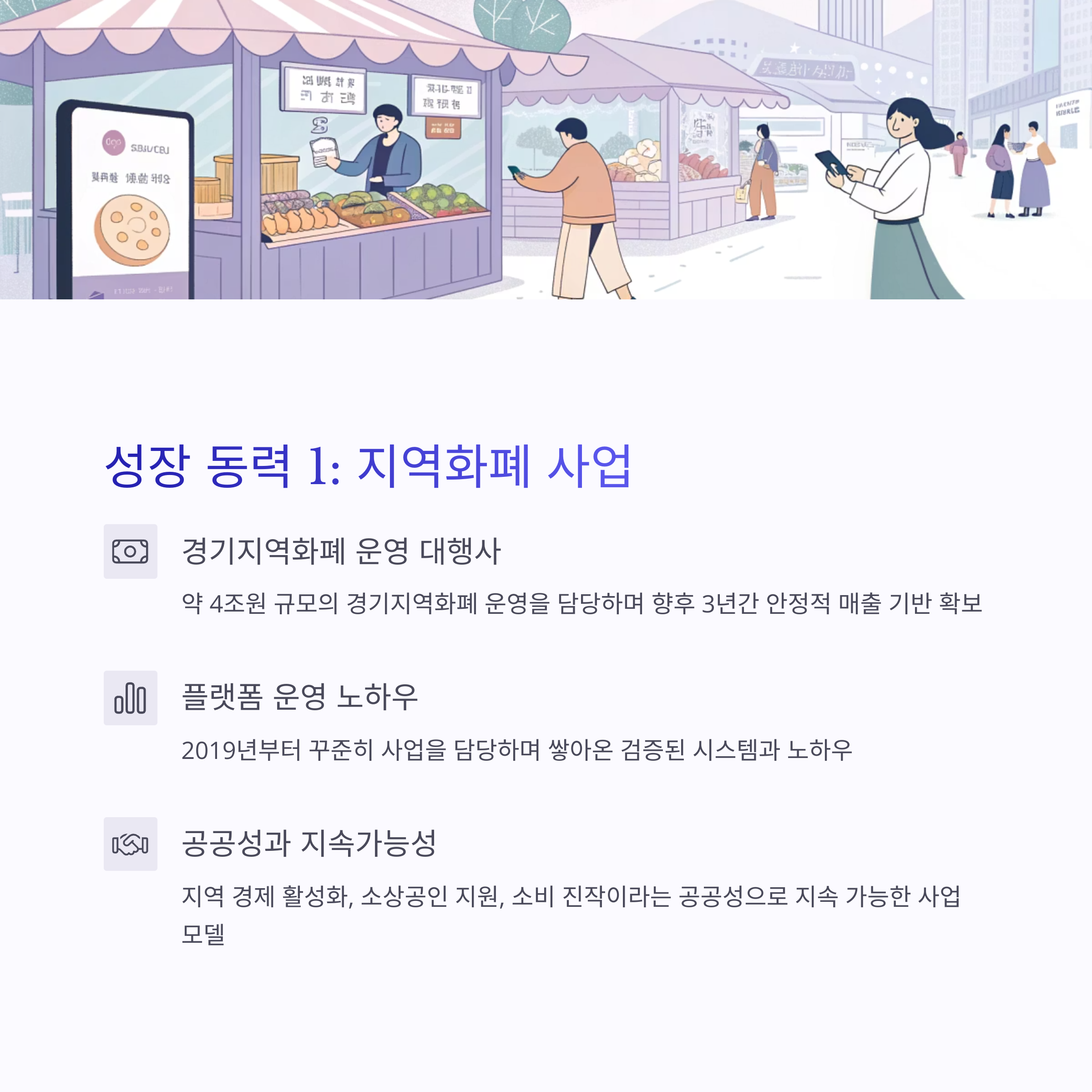 지역화폐는 단순한 결제를 넘어 지역 경제 활성화, 소상공인 지원, 소비 진작이라는 공공성을 담고 있어 지속 가능성이 높은 사업 모델로 평가받고 있습니다.