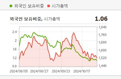 단기 포트폴리오를 구성한다면 시가 총액과 장중 거래량도 꼭 살펴봐야 합니다. 코윈테크의 시가 총액은 1971억 원이며 장중 거래량은 17,863원 을 기록했습니다. 대주주의 정보는 중요하지 않을 수 있으나 장기적으로는 확인이 필요합니다.
