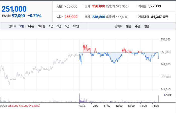 단기 포트폴리오를 구성한다면 시가 총액과 장중 거래량도 꼭 살펴봐야 합니다. 포스코퓨처엠의 시가 총액은 19조4433억 원이며 장중 거래량은 377,233원 을 기록했습니다. 대주주의 정보는 크게 중요하지 않을 수 있으나 장기적인 관점에서는 확인해보는 것이 좋습니다.