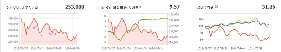 *2024년 6월 전년동기 대비 연결기준 매출액은 11.8% 감소, 영업이익은 43.9% 감소, 당기순이익은 37% 감소. 이차전지산업 부진의 영향으로 에너지소재부문의 실적 감소함. 매출 감소 및 각종 비용 증가 여파로 수익성은 다소 큰 폭으로 하락한 상황. 다소 어려운 상황이나 LG에너지솔루션, 포스코, OCI 등 대형 거래선을 기반으로 한 안정적 수주를 바탕으로 향후 꾸준한 성장세 계속 유지할 것으로 전망되고 있음.