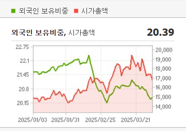 - 외국인 매도세: 외국인 자금이 빠져나갈 경우 주가 반등 속도가 늦어질 수 있음