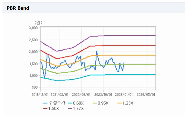 - PBR(주가순자산비율) 0.82 (업종 평균 2.18 대비 저평가 상태)