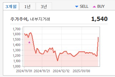 - 전일 대비 29.96% 상승, 1,540원 마감