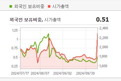 시가 총액과 장중 거래량도 단기 포트폴리오를 구성할 때 체크해야 합니다. 한국파마의 시가 총액은 2241억 원이며 장중 거래량은 1,345,222원 을 기록했습니다. 대주주의 정보는 크게 중요하지 않을 수 있지만 장기적으로는 확인해보는 것이 좋습니다.